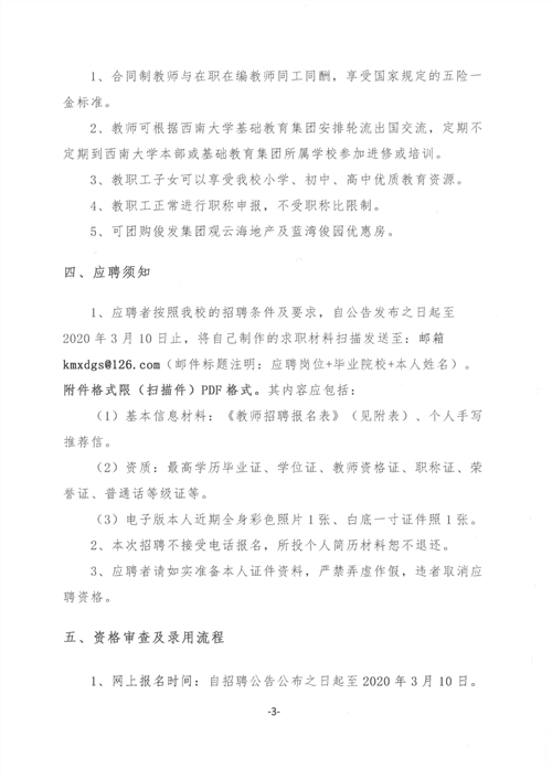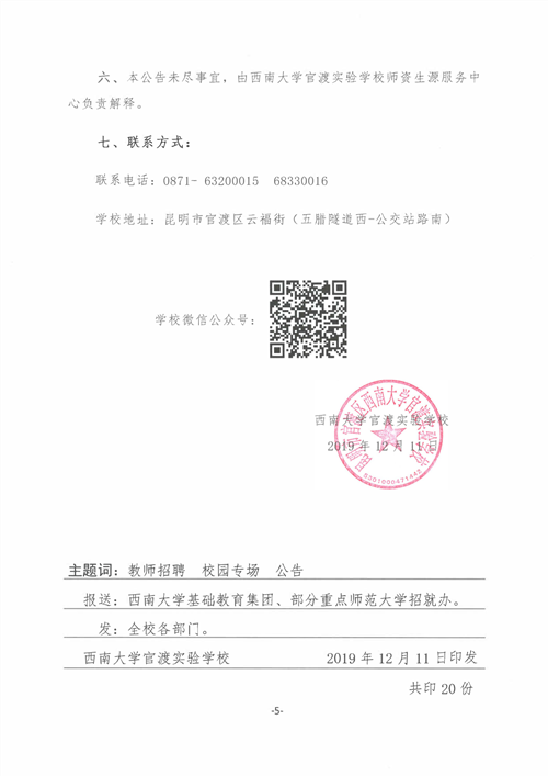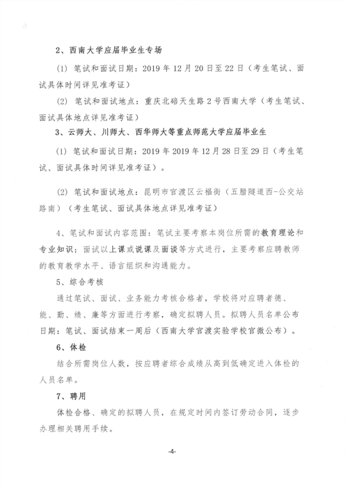 2019西南大学官渡实验学校校园招聘公告