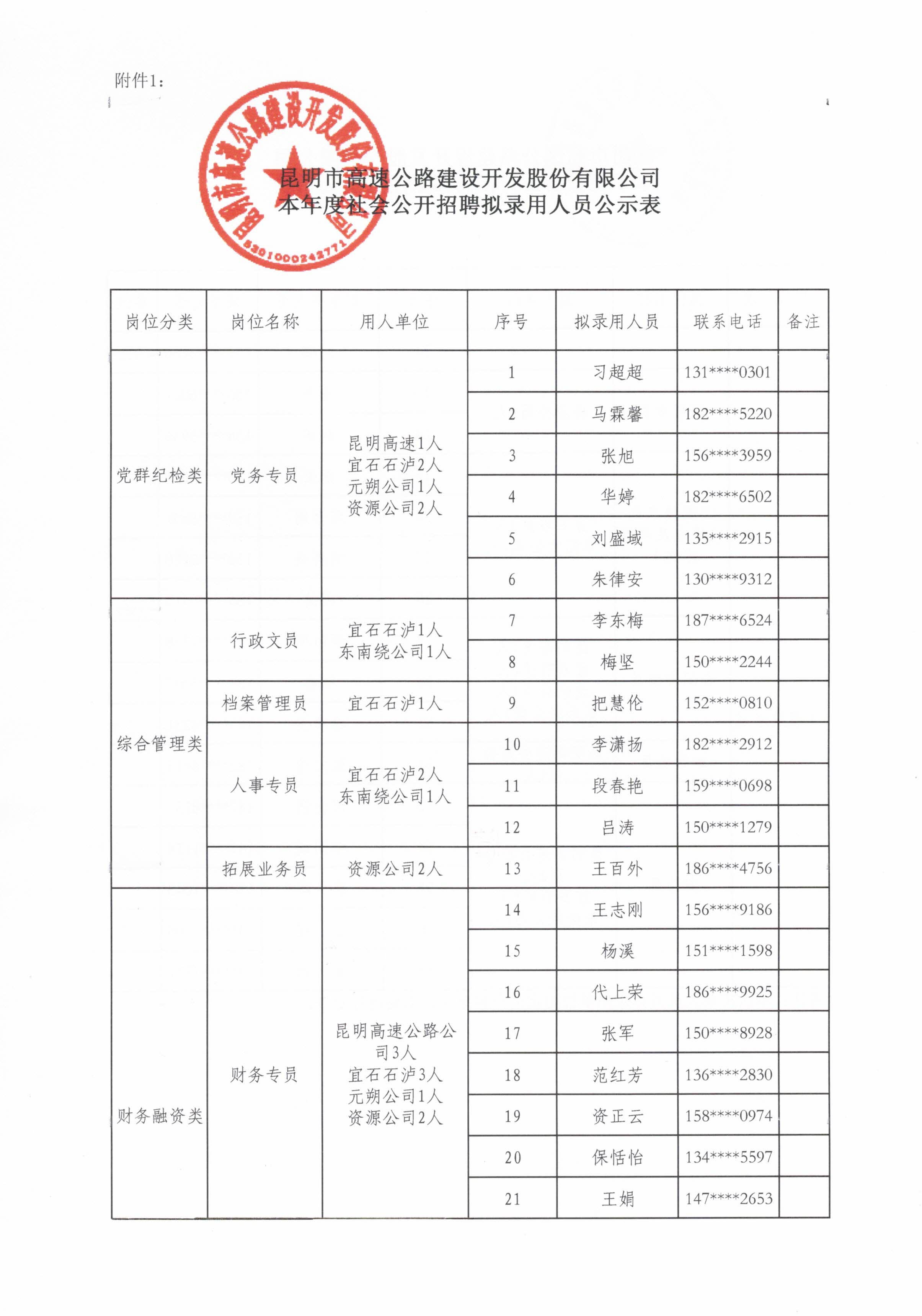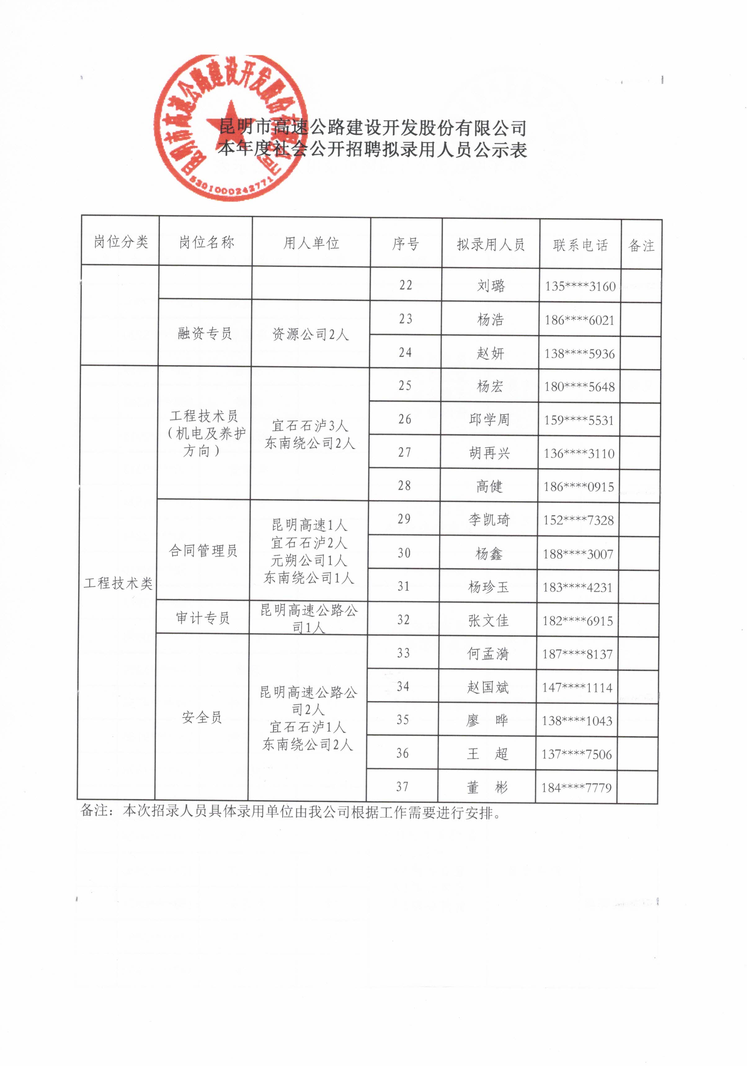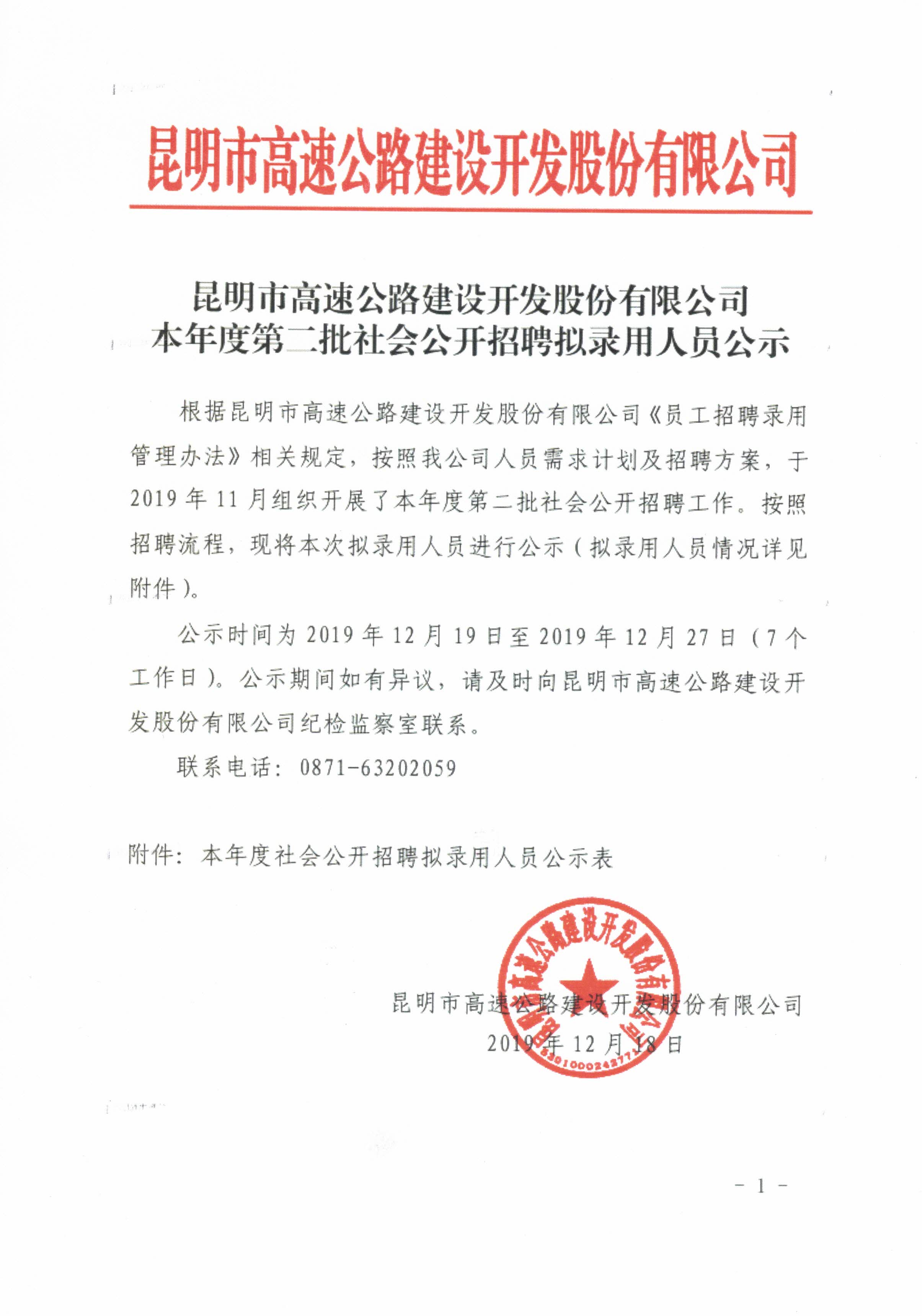 2019年昆明市高速公路社会招聘拟聘公示