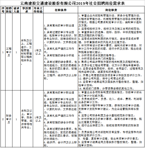 云南建投交通建设股份有限公司2019年社会招聘启事