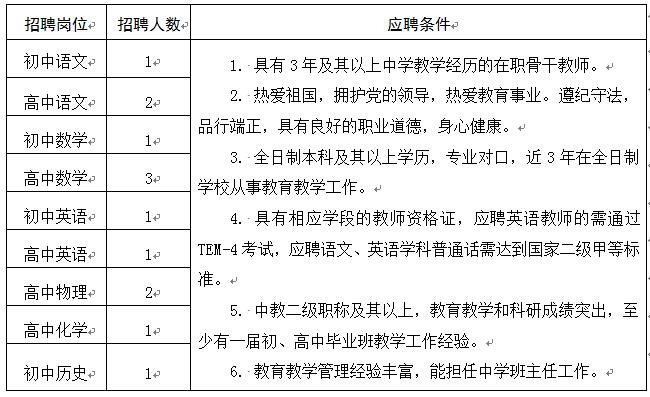 注:男教师年龄在40岁以下,女教师年龄在35岁以下。满足以下条件之一并取得相关证件者,年龄可适当放宽,同等条件下予以优先考虑。