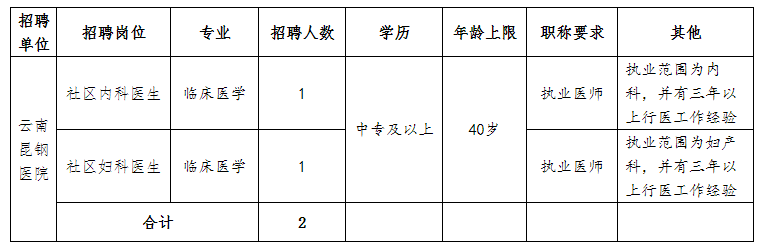 现场报名地点:云南昆钢医院综合楼310室人力资源部办公室