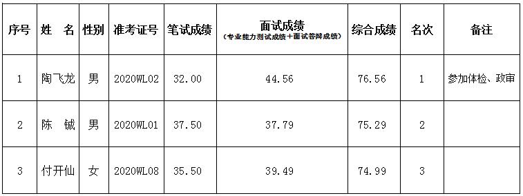 2020年公开招聘劳务派遣物理教师综合成绩公示